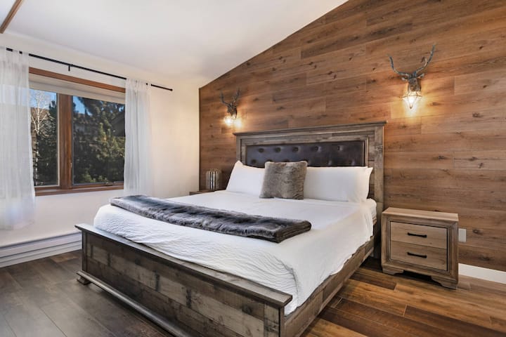 ชั้นบนจะมีห้องมาสเตอร์สวีทซึ่งมีเตียงคิงไซส์ทีวีจอใหญ่โต๊ะทำงานและห้องน้ำในตัว ห้องน้ำในตัวใหม่เอี่ยมพื้นอุ่นโต๊ะเครื่องแป้งเดี่ยวฝักบัวอาบน้ำแบบวอล์คอินพร้อมหัวฝนขนาดใหญ่ไดร์เป่าผมผ้าปูที่นอนและของใช้ในห้องน้ำ