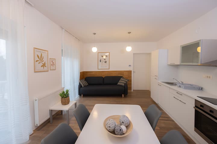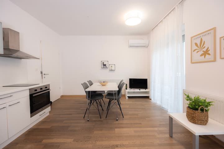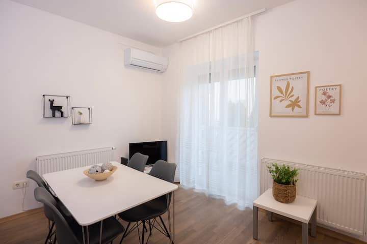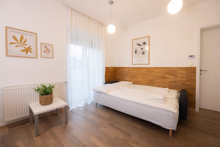 อพาร์ทเมนท์สะดวกสบายพร้อมระเบียงและที่จอดรถ