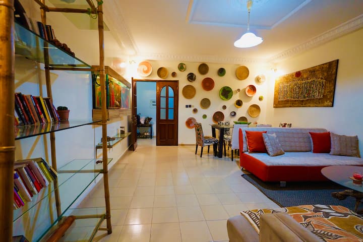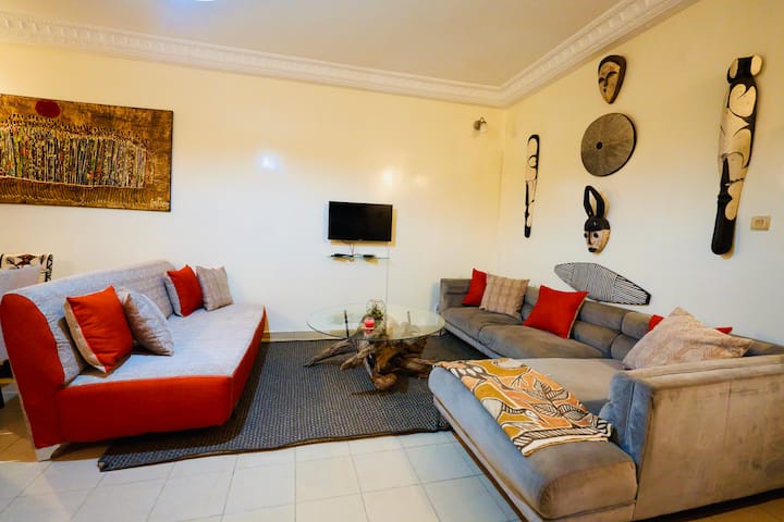 Maison Nolafrique เป็นสถานที่ที่สมบูรณ์แบบสำหรับบุคคลที่กำลังมองหาอพาร์ทเมนท์กว้างขวางในดาการ์ซึ่งออกแบบโดยช่างฝีมือของเซเนกัล มี Wi-Fi เครื่องปรับอากาศในห้องนอน 2 ห้องและห้องนั่งเล่นโทรทัศน์พร้อมเน็ตฟลิกซ์และยูทูบน้ำร้อนในห้องน้ำทั้ง 2 ห้องและเครื่องซักผ้า สำหรับการเข้าพักระยะยาวราคานี้รวมผู้ดูแลบ้านที่จะมาทำความสะอาดสัปดาห์ละสองครั้งรดน้ำต้นไม้และให้อาหารปลาและทำอาหารเซเนกัลให้คุณสัปดาห์ละสองครั้ง