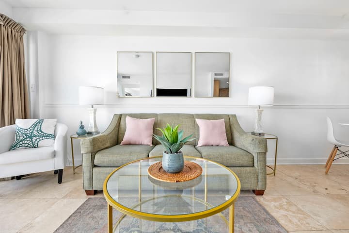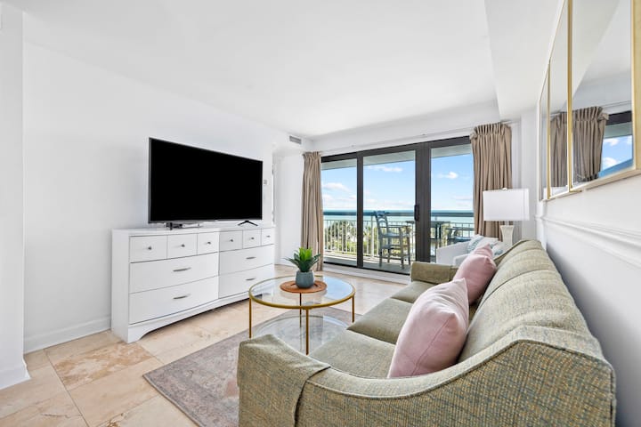 คอนโดนี้ได้รับการปรับปรุงอย่างสวยงามด้วยระเบียงคู่ที่น่าตื่นตาตื่นใจที่สุดที่ยื่นออกไปทั่วทั้งด้านหน้าของห้อง ทั้งห้องนั่งเล่นและห้องนอนหลักมีวิวชายหาดและมหาสมุทรที่ยอดเยี่ยม! ห้องนั่งเล่นมีโซฟาแบบดึงออกได้และเรามีตู้ลิ้นชักขนาดใหญ่ที่ใช้สำหรับวางทีวีดังนั้นจึงมีที่เก็บเสื้อผ้ามากมายสำหรับเด็ก 2 -3 คนหรือผู้เข้าพักคนอื่น