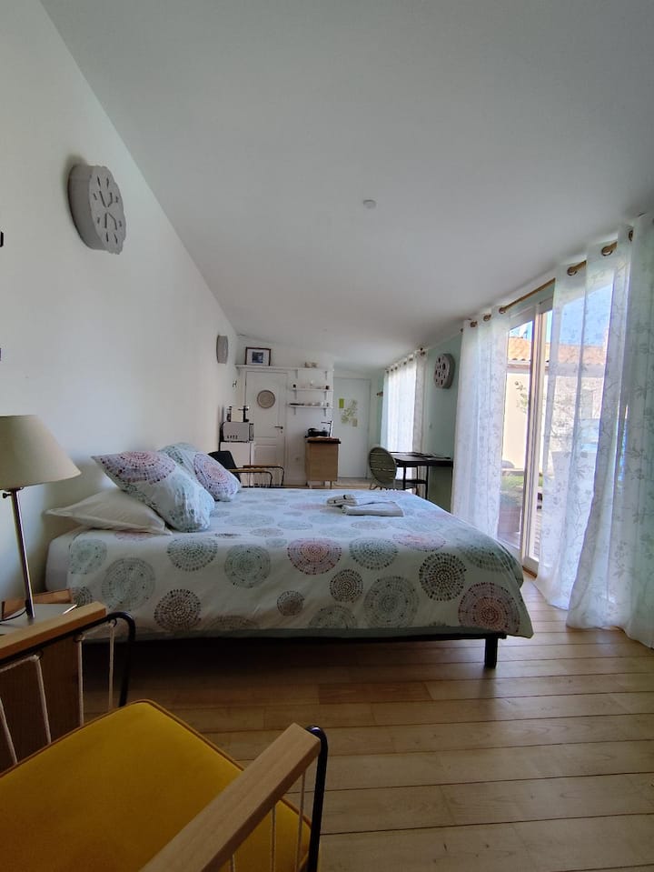 ห้องสตูดิโออิสระเงียบสงบมองเห็นสระว่ายน้ำ