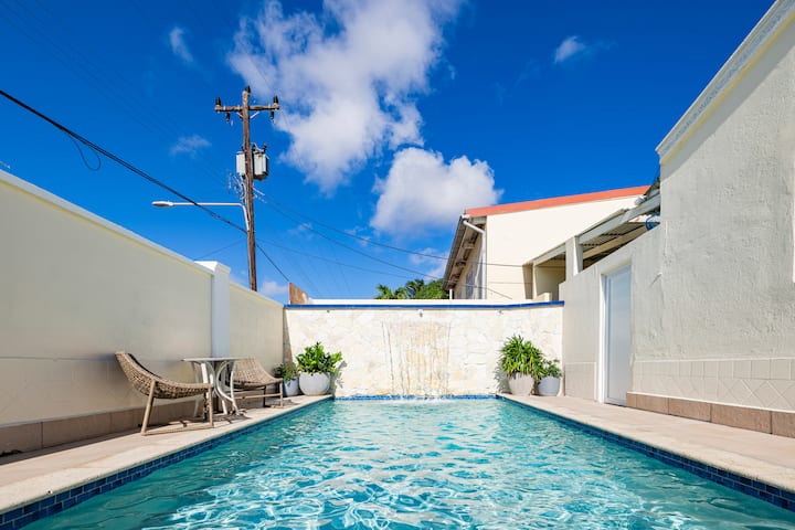 นี่เป็นหนึ่งในที่พักไม่กี่แห่งของย่านนี้ที่มีสระว่ายน้ำ