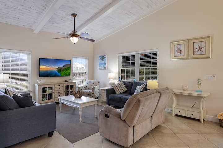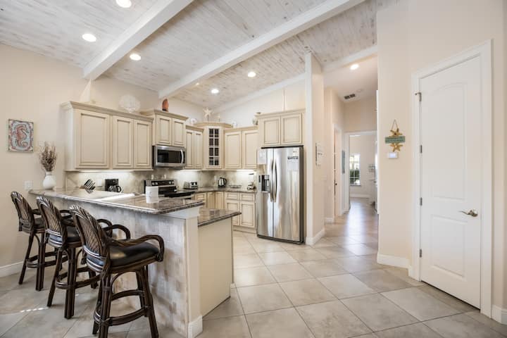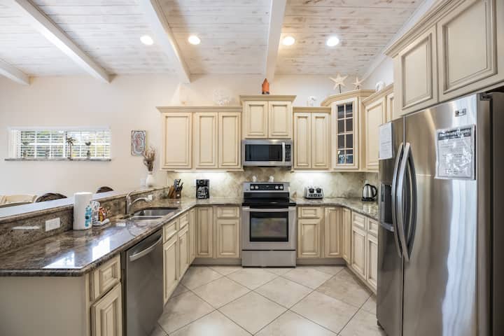 ก้าวเข้ามาในห้องและค้นพบพื้นที่นั่งเล่นที่สว่างและเปิดโล่งประดับด้วยเพดานโค้งไม้สีขาวและการตกแต่งแบบชายฝั่งที่อบอุ่น ห้องนั่งเล่นที่กว้างขวางมีโซฟาและที่นั่งคู่รัก 2 ที่นั่ง เหมาะสำหรับการชมภาพยนตร์กับครอบครัวหรือการพักผ่อนหลังจากไปชายหาดมาทั้งวัน ห้องครัวที่มีอุปกรณ์ครบครันประกอบด้วยเครื่องใช้ไฟฟ้าเหล็กกล้าไร้สนิม พื้นที่เคาน์เตอร์ขนาดใหญ่ และที่นั่งบาร์สำหรับ 3 ท่าน ทำให้การเตรียมอาหารเป็นเรื่องง่าย รวมตัวกันที่โต๊ะรับประทานอาหารขนาดใหญ่สำหรับสิบคน เหมาะสำหรับการรับประทานอาหารค่ำร่วมกัน เล่นเกมกระดาน หรือใช้เวลายามเย็นกับเพื่อนและครอบครัว