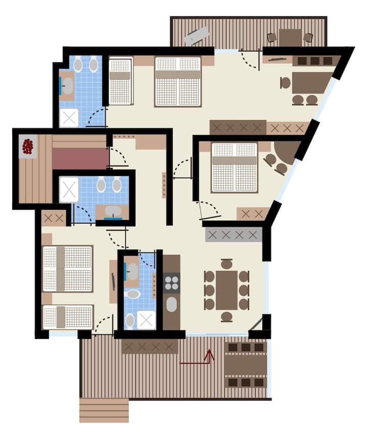 อพาร์ทเมนท์หรูพร้อมซาวน่าส่วนตัวและระเบียง