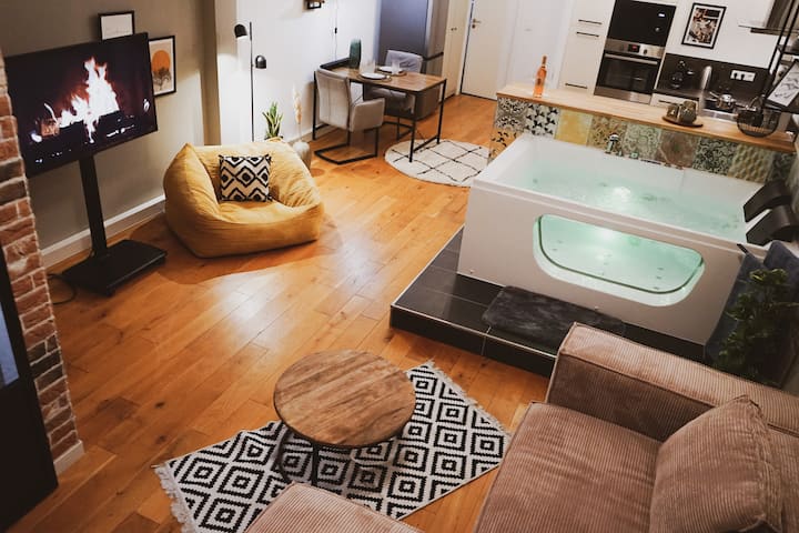 ลอฟท์ในเมืองที่มีสไตล์พร้อมอ่างน้ำวนส่วนตัว