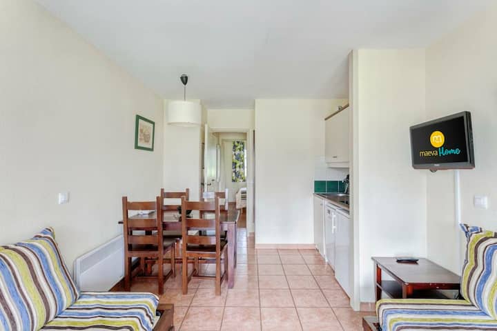 ข้อดีของที่พัก: อพาร์ทเมนท์ 2 ห้องสำหรับ 5 คนพร้อมสวนและสระว่ายน้ำอุ่นกลางแจ้งในที่พัก