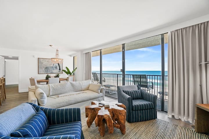 ลองจินตนาการว่าตื่นขึ้นมาชมวิวอ่าวที่สวยงามจากผนังและหน้าต่างสูงจากพื้นจรดเพดานทั้งในห้องนอนห้องนั่งเล่นและห้องรับประทานอาหาร สวรรค์ขนาด 1,400 ตารางฟุตบนชั้น 4 ของ Seachase แห่งนี้เป็นสถานที่พักผ่อนที่เงียบสงบสำหรับครอบครัวและคู่รักที่กำลังมองหาการพักผ่อนริมชายหาดที่ผ่อนคลาย