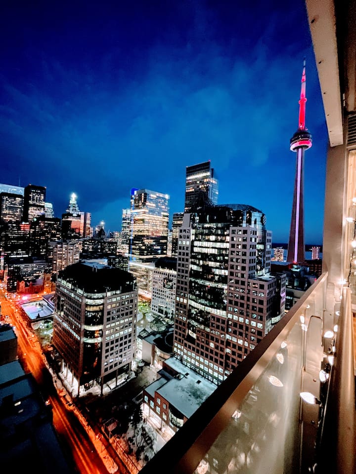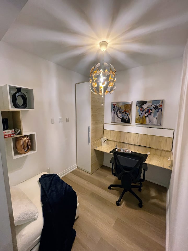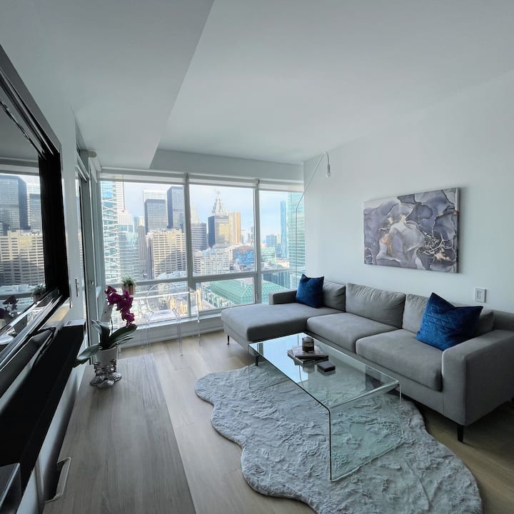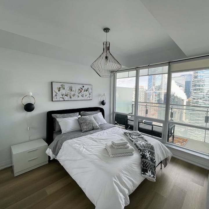 สวรรค์ใจกลางเมืองนี้เหมาะสำหรับคนทำงานคู่รักหรือผู้ที่ต้องการเข้าร่วมประสบการณ์ทั้งหมดในโทรอนโต ห้องนอนตกแต่งใหม่หรูหราพร้อมวิวเมืองพื้นที่นั่งเล่น/พื้นที่รับประทานอาหารที่เปิดโล่งสว่างและห้องขนาดใหญ่แยกต่างหากซึ่งสามารถใช้เป็นสำนักงานหรือห้องนอนที่ 2 ได้ นี่เป็นที่พักผ่อนที่สมบูรณ์แบบหรือที่พักระยะยาวสำหรับผู้ที่ต้องการอยู่ใจกลางเมืองโตรอนโต