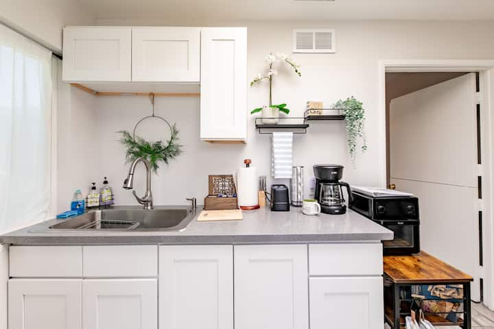 ห้องพักขนาด 100 ตารางฟุตที่มีเสน่ห์แห่งนี้เหมาะอย่างยิ่งสำหรับผู้ที่กำลังมองหาที่พักผ่อนอย่างสงบในขณะที่ยังคงมอบความสะดวกสบายและความสะดวกสบาย
