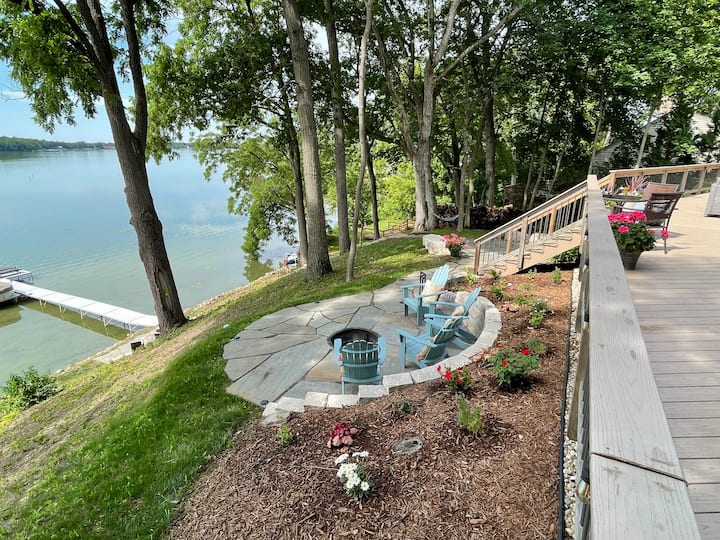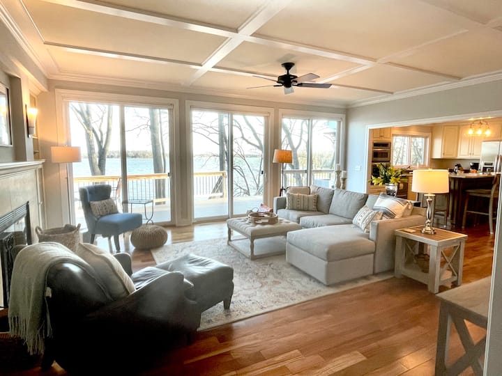 บ้านพักริมทะเลสาบ 4 ห้องนอนพร้อมเตาผิงและเรือคายัค