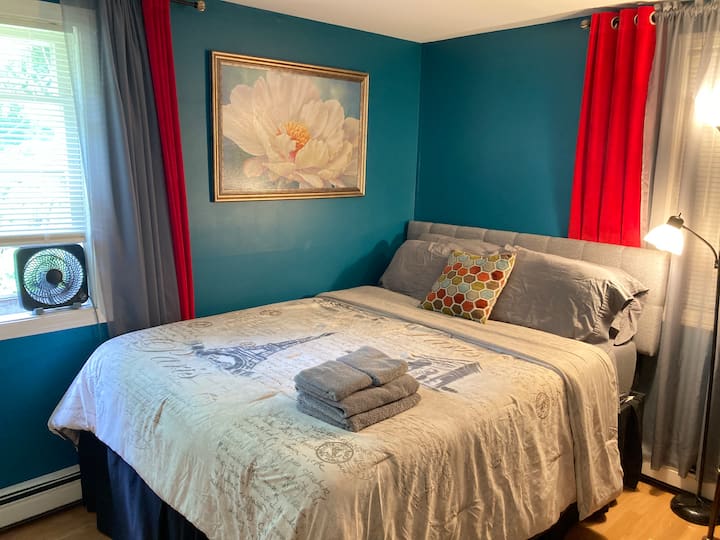 ห้องนอนสบายๆ และห้องน้ำส่วนตัวในบ้านฟาลเมาท์