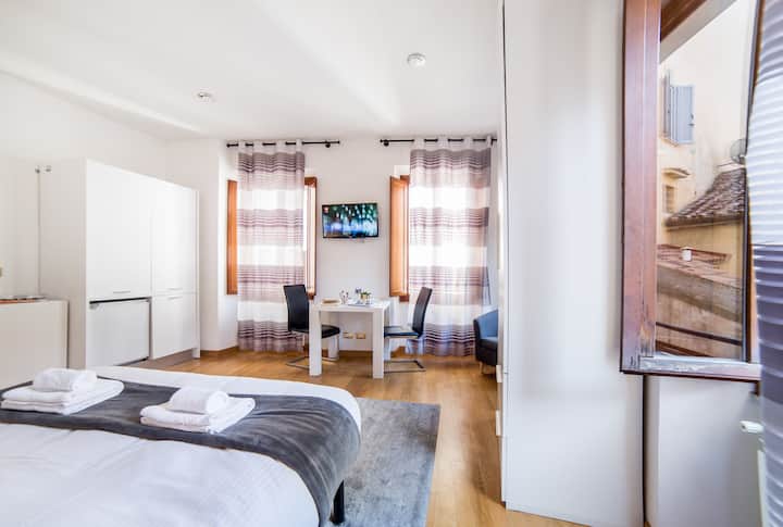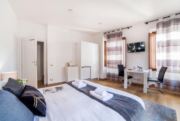 สตูดิโอที่มีแสงแดดและวิวใจกลางกรุงโรม