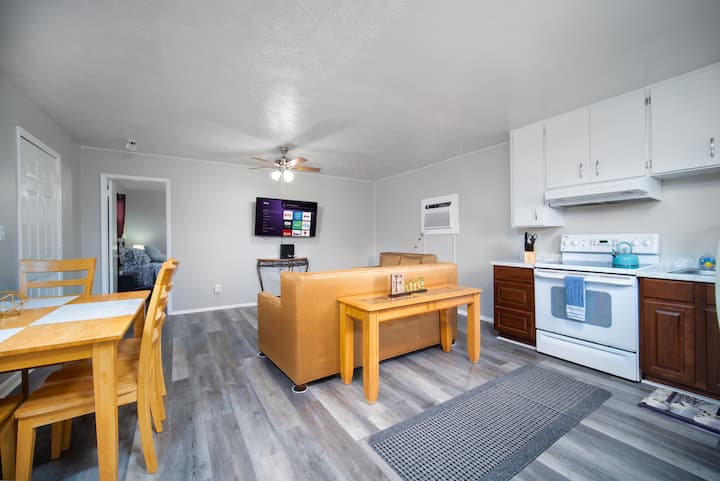 บ้านคอทเทจส่วนตัว มีเตียงควีนไซส์ นอนได้ 3 คน ใกล้กับฐานทัพอากาศแจ็กสัน