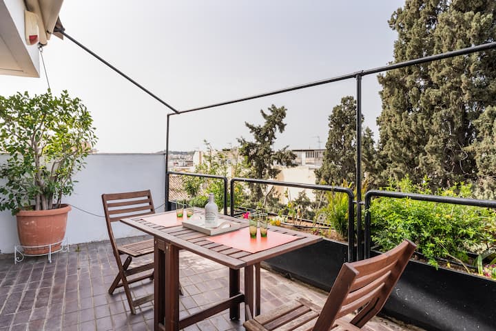 อพาร์ทเมนท์ดูเพล็กซ์ที่สว่างไสวในปลากา วิวอะโครโพลิส