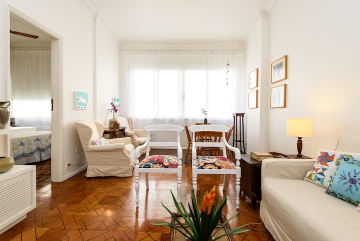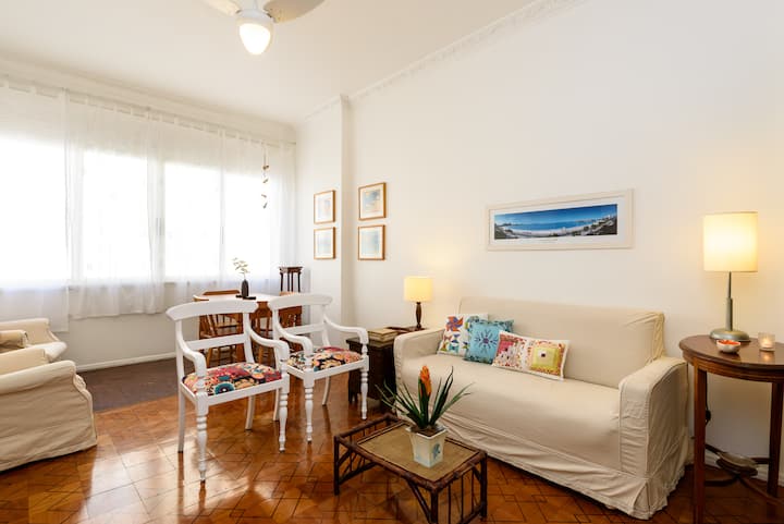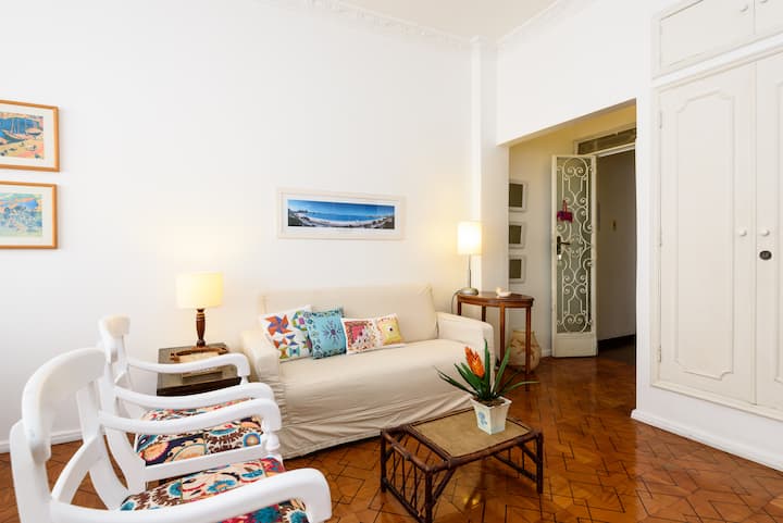 แฟลตที่อบอุ่นตั้งอยู่ระหว่างโคปาคาบานาและอิปาเนมา! มีเครื่องปรับอากาศเต็มรูปแบบ