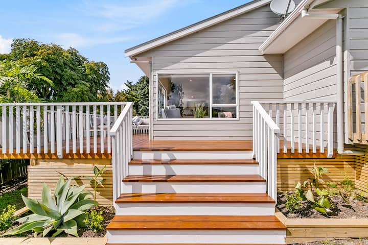 - บ้านพักตากอากาศที่มีที่นั่งกลางแจ้งใน ออกแลนด์