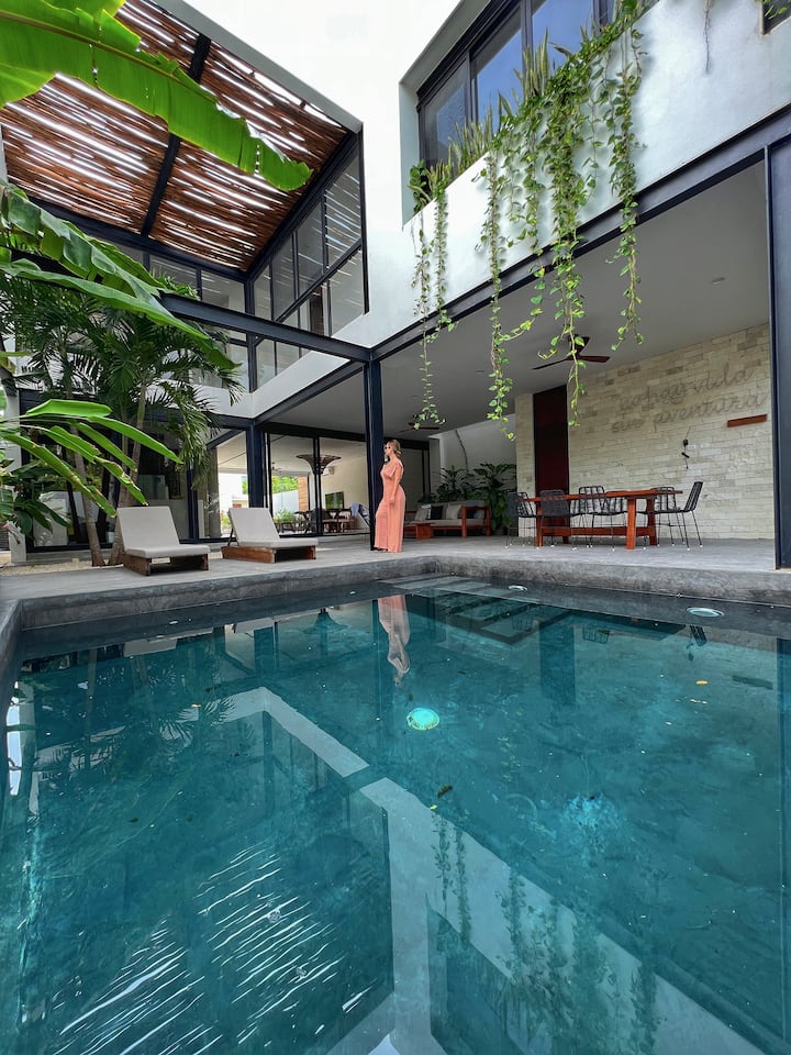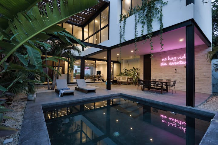 Casa Aventura ใน Aldea Zama เป็นฐานที่สงบของคุณในตูลุม ว่ายน้ำในสระสไตล์ซีโนตส่วนตัว รวมตัวกันในพื้นที่นั่งเล่นในร่ม/กลางแจ้งแบบเปิดโล่ง ห้องนอนสี่ห้องที่สะดวกสบาย ห้องครัวชั้นเลิศ เครื่องปรับอากาศเต็มรูปแบบ และ Wi-Fi Starlink ที่รวดเร็วช่วยให้ชีวิตง่ายขึ้น ที่จอดรถที่ปลอดภัยและการรักษาความปลอดภัยตลอด 24 ชั่วโมงช่วยเพิ่มความอุ่นใจ ผู้ดูแลของคุณสามารถจองรถรับส่งสนามบิน อาหารค่ำจากเชฟ การนวด และแผนการท่องเที่ยวในท้องถิ่นได้ ทำงานทางไกลจากวิลล่าของเรา ไม่กี่นาทีถึงชายหาดและเมือง เหมาะสำหรับครอบครัว เพื่อน และการเข้าพักระยะยาว