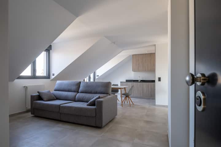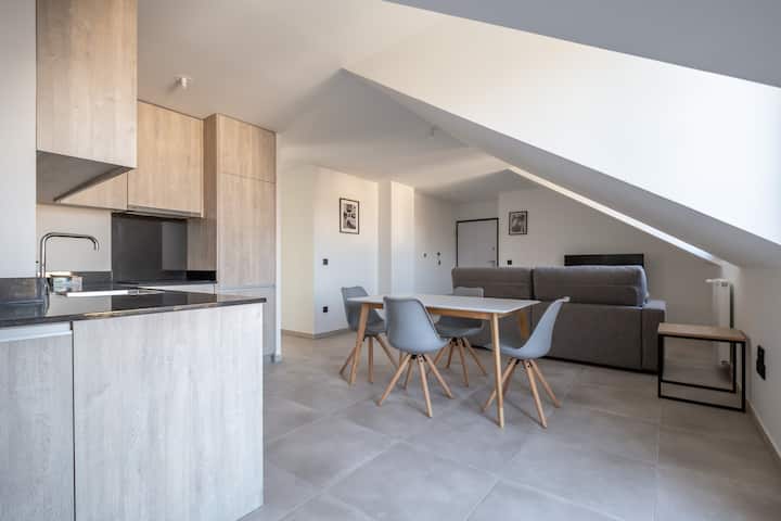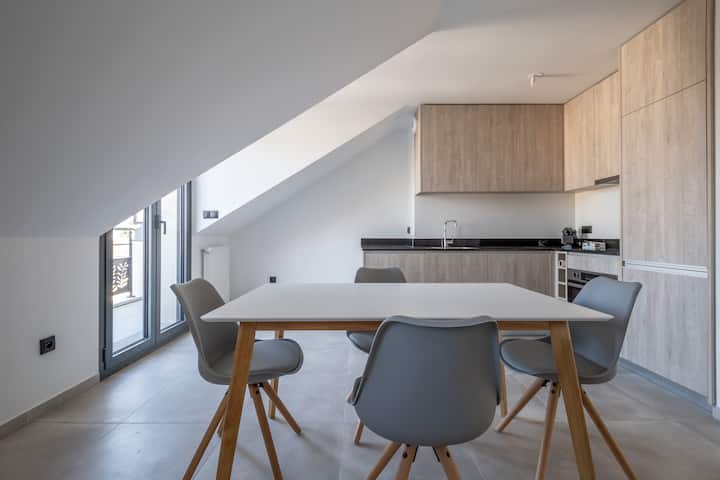 อพาร์ทเมนท์ที่สว่างไสวและสวยงามพร้อมระเบียงขนาดเล็ก