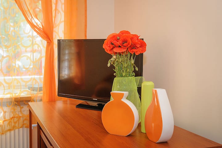 อพาร์ทเมนท์อบอุ่นกว้างขวางที่จอดรถฟรี