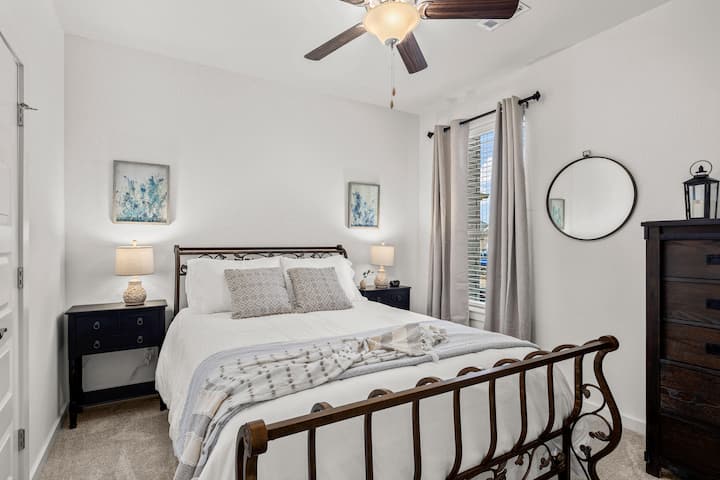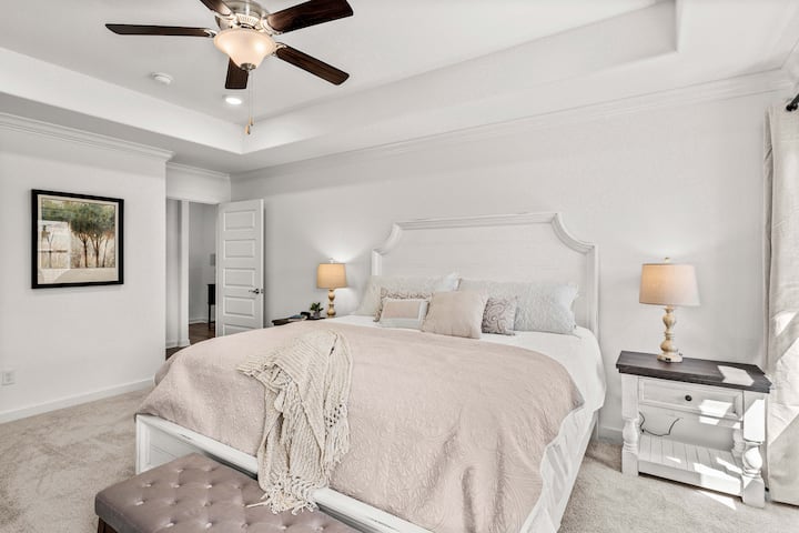 เมื่อสิ้นสุดวันพักผ่อนและเติมพลังในหนึ่งในสามห้องนอนสุดหรูที่มีที่นอนพรีเมี่ยมใหม่ล่าสุดและเครื่องนอนหรูหรา เลือกจาก (1) ห้องนอนใหญ่พร้อมเตียงคิงไซส์ สมาร์ททีวี แสงธรรมชาติมากมาย และห้องน้ำในตัวพร้อมอ่างอาบน้ำขนาดใหญ่ (โปรดทราบว่าเจ็ทจากุซซี่ไม่สามารถใช้งานได้) (2) ห้องนอนที่สองซึ่งมีเตียงคิงไซส์หรูหราสมาร์ททีวีเพดานโค้งและอ่างอาบน้ำที่อยู่ติดกัน (3) ห้องนอนที่สามเป็นที่ชื่นชอบของผู้เข้าพักที่อบอุ่นซึ่งมีเตียงควีนไซส์ทีวีโรกุและอ่างอาบน้ำที่อยู่ติดกัน วางแผนที่จะนอนดึกเพราะห้องนอนทั้งหมดของเรามีม่านกันแสง มีที่นอนเป่าลมคู่ให้ด้วยหากจำเป็น