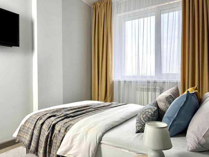 อพาร์ทเมนท์ที่อบอุ่นและสดใสใจกลางเมืองอัลมาตีที่สวยงาม อพาร์ทเมนท์มีสิ่งอำนวยความสะดวกครบครันเพื่อการเข้าพักที่สะดวกสบาย ห้องครัวมีอุปกรณ์ครบครัน (จานเตาไฟกาต้มน้ำตู้เย็นเครื่องชงกาแฟ) WI-FI ฟรี, เครื่องปรับอากาศ, เคเบิลทีวี
