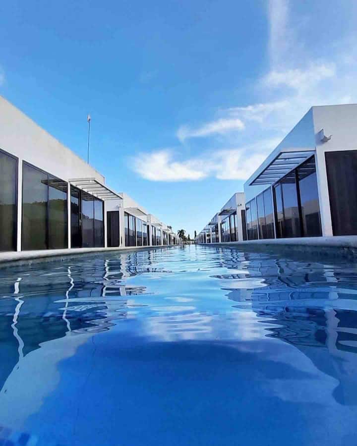 นี่เป็นหนึ่งในที่พักไม่กี่แห่งของย่านนี้ที่มีสระว่ายน้ำ
