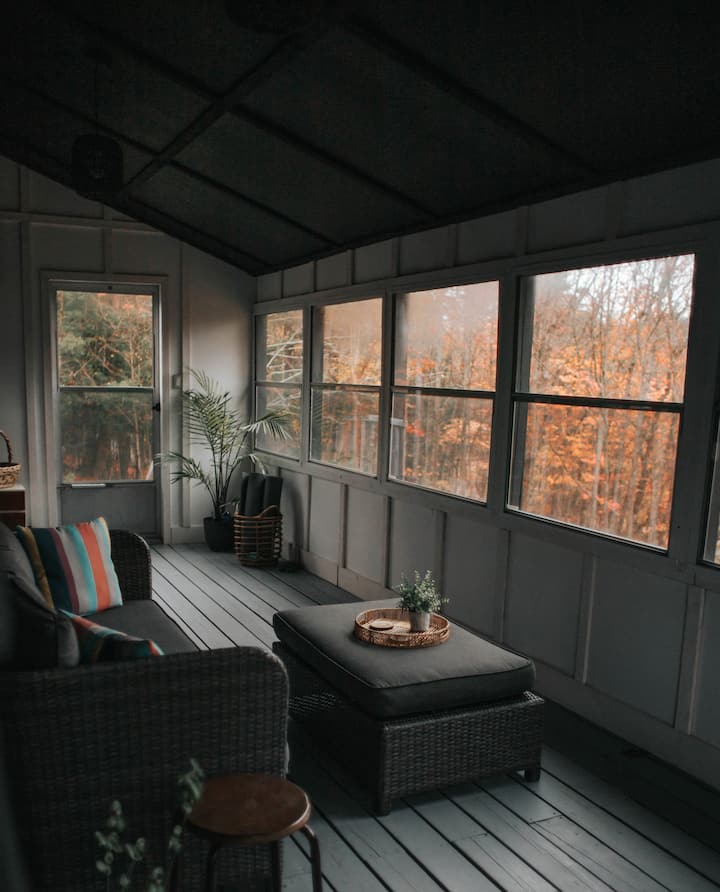 มีการคัดกรองขนาดใหญ่ในห้องอาบแดดพร้อมพื้นที่ให้นั่งและมีพื้นที่สำหรับโยคะ/ออกกำลังกาย มีเสื่อโยคะให้บริการ (2) ใช้เวลาพลบค่ำในห้องอาบแดดเพื่อเพลิดเพลินกับการชมกวางป่าในสวนหลังบ้านในพื้นที่ปลอดยุงนี้