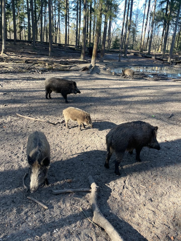 ระยะเดิน 500 ม.-1.5 กม.): ป่าเวลูเว อาเพนเฮล จุดให้อาหารหมูป่าและกวาง ป่าปีนป่าย บอชบัด (รวมถึงสไลเดอร์ความเร็วสูง 3 สไลด์) สวนสนุกจูเลียนทอเรน (สำหรับเด็ก) ศูนย์กลางอาเปลดอร์น (บาร์ ร้านอาหาร โรงละคร ห้องเล่นเกม และร้านค้า)