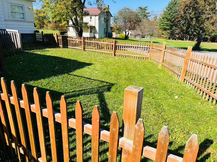 บ้านสองห้องนอนที่อบอุ่นและสดใสพร้อมรั้วล้อมรอบ