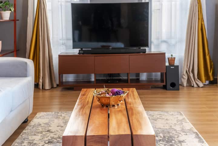 อพาร์ทเมนท์ 1 ห้องนอนที่ทันสมัยและเก๋ไก๋ พร้อมที่จอดรถฟรีและ Wi-Fi