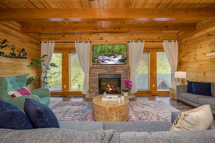 เมื่อคุณก้าวลงไปที่ชั้นใต้ดินเตรียมตัวสำหรับภาพยนตร์มาราธอนและซีรีส์กับภาพยนตร์และการแสดงที่คุณชื่นชอบในห้องสื่อที่กว้างขวางพร้อมโซฟาสบายๆ 3 ตัวและทีวี LG 77 "OLED พร้อมระบบซาวด์บาร์รอบทิศทาง ตู้เสื้อผ้าซักรีดพร้อมเครื่องซักผ้าและเครื่องอบผ้าอยู่ในห้องสื่อ ห้องสื่อมีห้องน้ำในตัวเต็มรูปแบบพร้อมห้องนอนของ Clingman's Dome ที่มีเตียงขนาดคิงไซส์และระเบียงหันหน้าไปทางทิศตะวันตกเพื่อดื่มด่ำกับพระอาทิตย์ตกจากอ่างน้ำร้อน ด้านขวาของห้องสื่อห้องนอน Anakeesta ที่ขี้เล่นมีเตียงสองชั้นขนาดควีนไซส์ (4 เตียง) ห้องน้ำในตัวครึ่งหนึ่งและระเบียงหันหน้าไปทางทิศตะวันตกพร้อมอ่างน้ำร้อนที่ 2