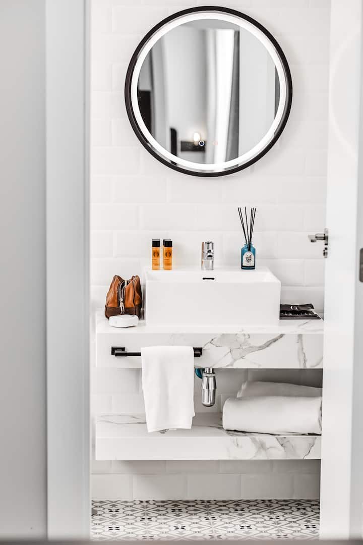อพาร์ทเมนท์ทุกแห่งมีห้องครัวที่มีอุปกรณ์ครบครัน Wi-Fi ฟรี และห้องน้ำส่วนตัว