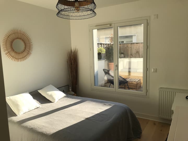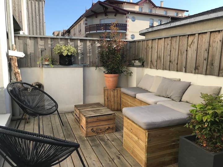 ห้องพัก 2 ห้องนอนที่อบอุ่นและเงียบสงบพร้อมระเบียงไม้ในใจกลางเมือง