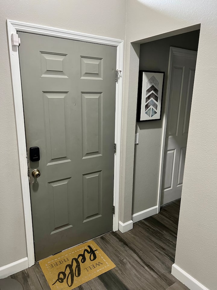 ห้องน้ำส่วนตัวและห้องนอนที่อบอุ่นพร้อมเตียงควีนไซส์