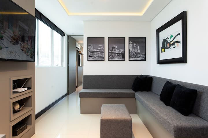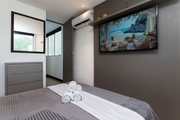 อพาร์ทเมนท์ตกแต่งริมทะเล (เครื่องปรับอากาศ/Wi-Fi/สมาร์ททีวี)