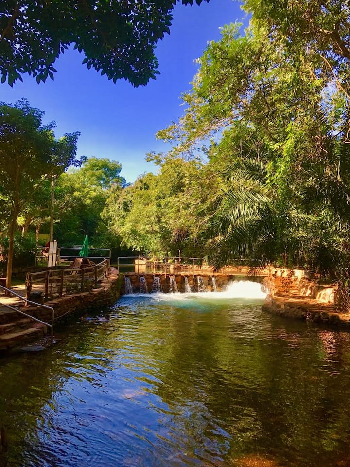 ด้วยทำเลที่ได้รับสิทธิพิเศษ Thermas Paradise Residence และ Rio Quente Resort complex แบบดั้งเดิมตั้งอยู่บนฝั่งของ Ribeirão de Água Quente ซึ่งเป็นแม่น้ำน้ำพุร้อนที่ใหญ่ที่สุดในโลก มีพื้นที่พักผ่อนและพื้นที่พักผ่อนขนาดใหญ่ที่อาบน้ำทั้งหมดโดย “Rio Quente” ซึ่งเป็นไปได้ที่จะดำน้ำสนุกหรือผ่อนคลาย!
