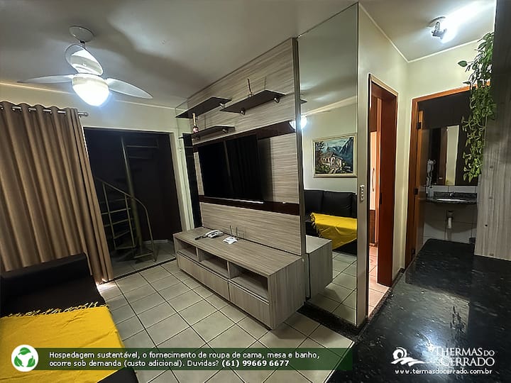 Apartamento duplex no Residencial Thermas Paradise. พื้นที่พักผ่อนที่มีน้ำพุร้อนแม่น้ำอุ่นๆผ่านภายในคอนโด สถานที่ที่เหมาะสำหรับการพักผ่อนกับครอบครัวและเพื่อน