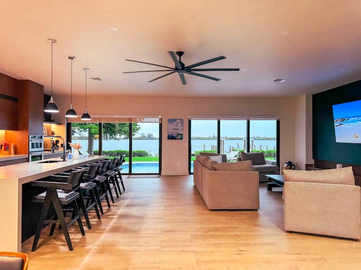 ที่พักริมน้ำพร้อมสระว่ายน้ำ ท่าเรือ และวิวพระอาทิตย์ตก