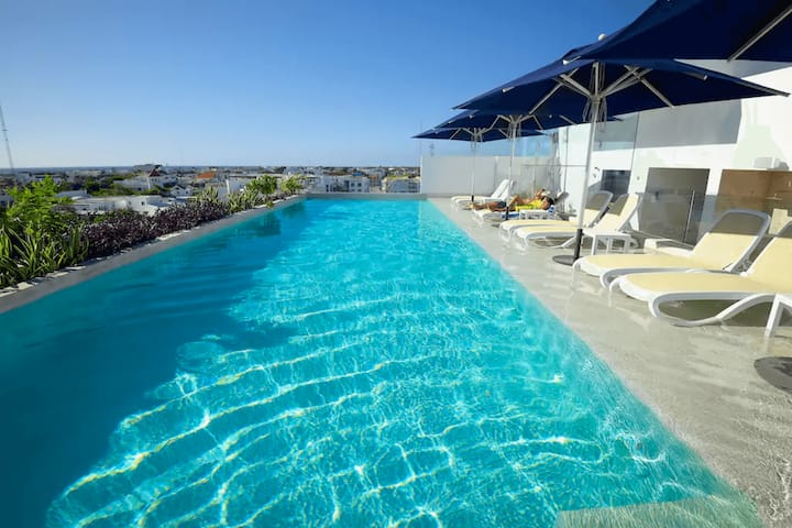 นี่เป็นหนึ่งในที่พักไม่กี่แห่งของย่านนี้ที่มีสระว่ายน้ำ