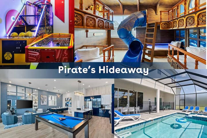 ห้องนอนในธีม: สำหรับเด็กเล็กสถานที่ท่องเที่ยวหลักคือห้องนอน Pirate's Hideaway ที่ให้ชื่อวิลล่าสำหรับพักผ่อนที่ยอดเยี่ยมแห่งนี้ พวกเขาจะพูดว่า “aye, aye, aye” เข้านอนได้อย่างง่ายดายในเตียงสองชั้นที่มีมนต์ขลังสามเตียงที่รองรับเด็กโชคดีได้ถึง 6 คน เป็นห้องเด็กเล่นสวรรค์แห่งนี้จุดประกายจินตนาการด้วยศิลปะบนผนังที่สดใสที่มีเรือคลุมเรือโจรสลัดเพื่อนร่วมทางสไลด์การหลบหนีโค้งแผนที่โบราณและหลุมที่มองออกไปยัง Galleons ที่ใกล้เข้ามา โบนัส: รอให้ลูกๆของคุณค้นพบตู้เสื้อผ้าที่เพิ่มเป็นสองเท่าเป็นห้องเล่นเกมลับ!