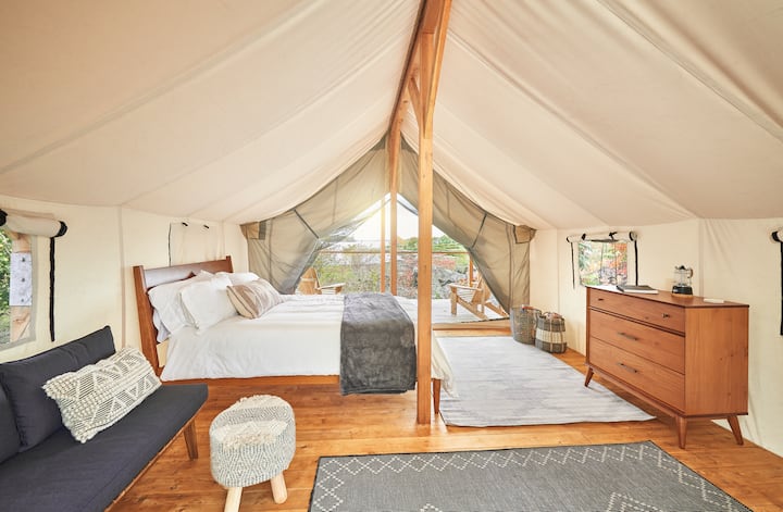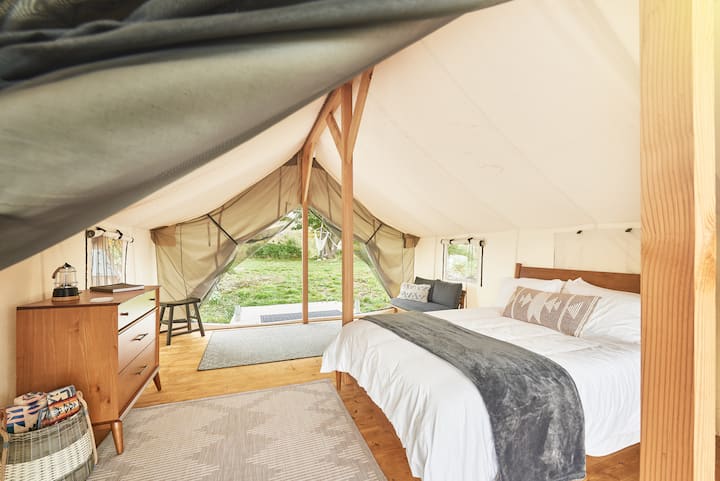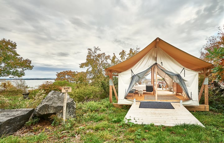 เคบินเต็นท์ North Star บนเกาะพร้อมป้อมปราการประวัติศาสตร์