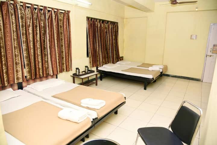 ห้องพัก 4 เตียงพร้อมเครื่องปรับอากาศในโรงแรม Sai Yatri Trimbakeshwar