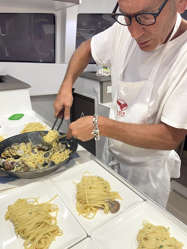 เรือคาตามารันแบบเปิดโล่งในทะเลซาร์ดิเนียตอนใต้