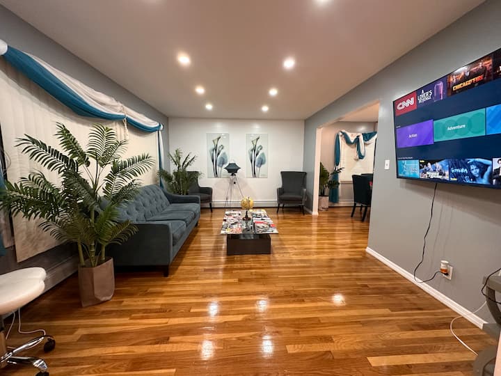 โคซี่ควีนส์รีทรีทพร้อมสิ่งอำนวยความสะดวกสำหรับครอบครัวและที่จอดรถ