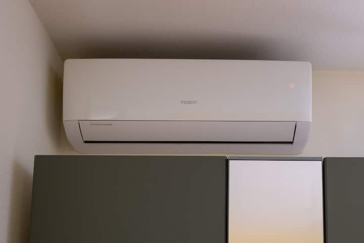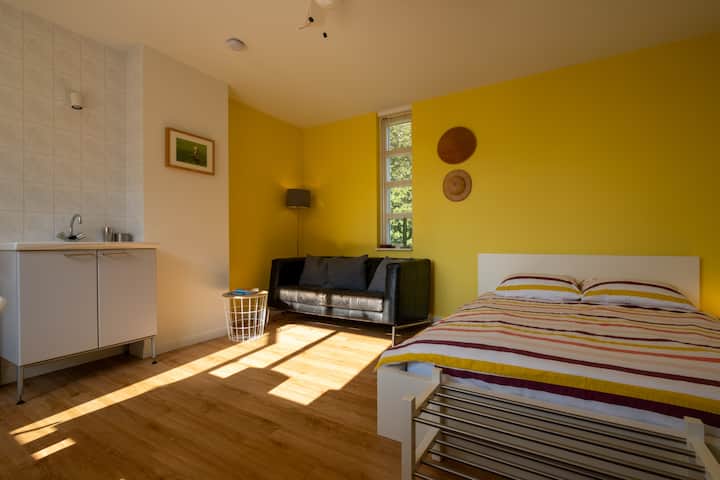ห้องที่มีแสงแดดมากพร้อมห้องอาบน้ำฝักบัวและห้องสุขา