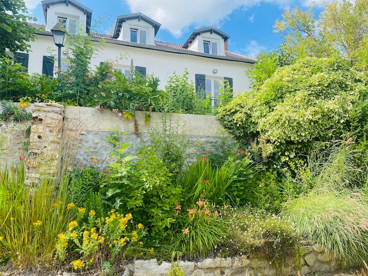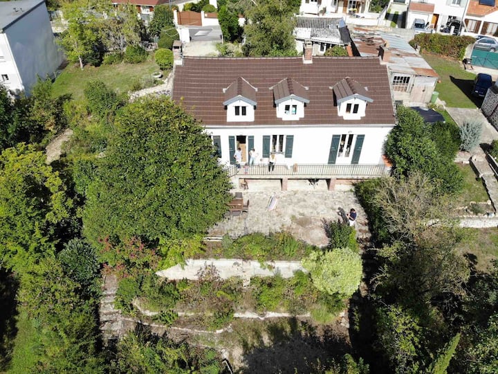 บ้านสวยงามในสวนที่มีทิวทัศน์สวยงาม ใกล้รถไฟ RER ที่มีการเชื่อมต่อโดยตรงกับปารีส