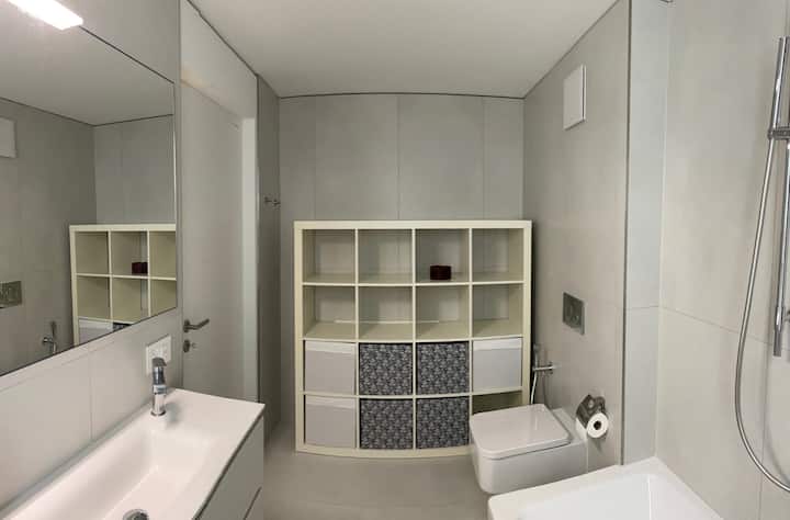 ห้องพักที่กว้างขวางและสว่างไสวพร้อมห้องน้ำส่วนตัว