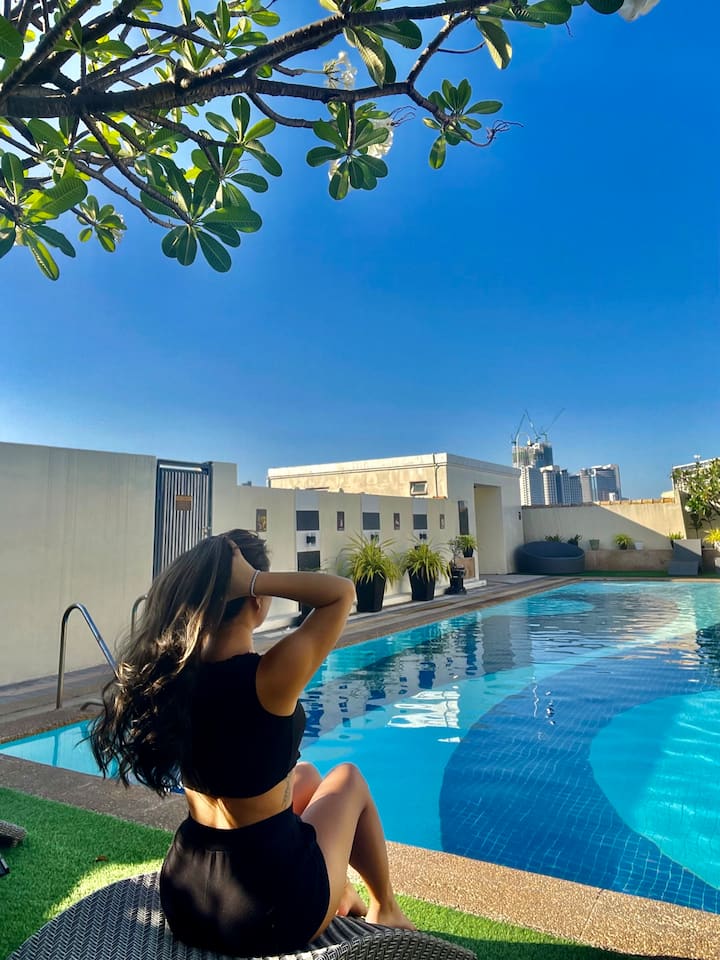 นี่เป็นหนึ่งในที่พักไม่กี่แห่งของย่านนี้ที่มีสระว่ายน้ำ
