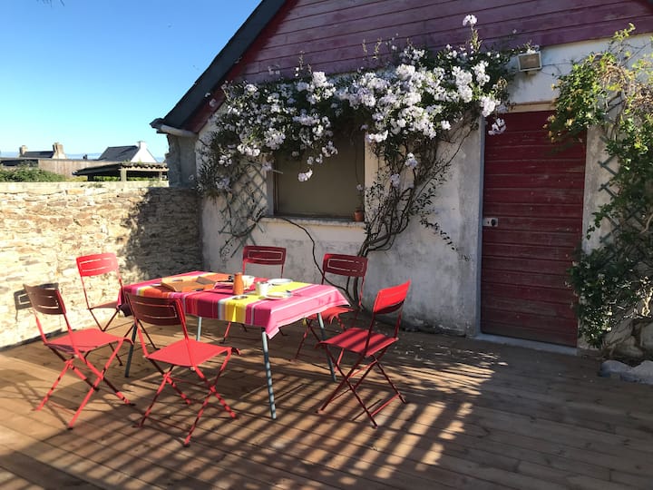 - บ้านพักตากอากาศที่มีที่นั่งกลางแจ้งใน เบรอตาญ