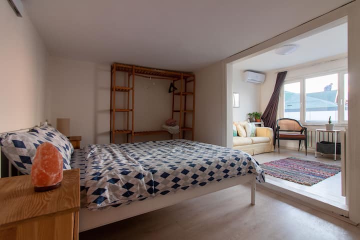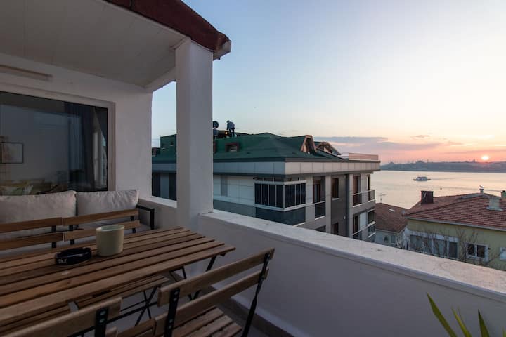อพาร์ทเมนท์ที่น่ารักแห่งนี้ตั้งอยู่ในทำเลที่สมบูรณ์แบบ มองเห็นบอสฟอรัสอันโด่งดัง ไม่ว่าจะช่วงเวลาใดของวัน โดยเฉพาะช่วงพระอาทิตย์ตกดิน ที่นี่มีวิวที่สวยงามของคาบสมุทรประวัติศาสตร์ของอิสตันบูลที่น่าทึ่ง และยังมีสถานที่สำคัญที่โด่งดังที่สุดของเมือง เช่น ฮาเกียโซเฟีย พระราชวังโทปกาปี หอคอยกาลาตา และหอคอยเมเดิน อพาร์ทเมนท์ยังมีระเบียงส่วนตัว ห้องครัวที่มีอุปกรณ์ครบครัน และห้องน้ำใหม่เอี่ยม ทำให้เป็นที่พักที่เหมาะสำหรับการเข้าพักที่สะดวกสบายและน่าจดจำในอิสตันบูล